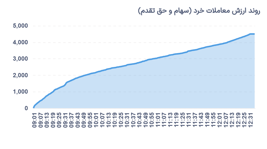 سرمایهگذاران حقیقی نقش کلیدی ایفا کردند؛ سرانه خرید آنها بالاتر از فروش بود و ارزش معاملات خرد سهام و حق تقدم نیز روندی صعودی را طی کرد. در مجموع نمادهای معاملهشده، ۶۳۴ نماد با افزایش قیمت بسته شدند، در حالی که تنها ۷۸ نماد منفی بودند، که این نسبت برتری قاطع خریداران را برجسته میکند.