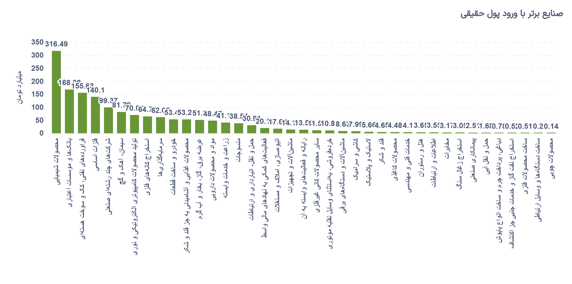 جریان پول حقیقی نیز جالب توجه بود: گروه صنعتی بیمه و صندوقهای بازنشستگی با بیشترین خروج نقدینگی مواجه شدند، اما گروه محصولات شیمیایی بیشترین ورود پول حقیقی را جذب کرد و به عنوان یکی از نقاط قوت بازار ظاهر شد. این گزارش بر اساس دادههای معاملاتی روز تهیه شده و چشمانداز مثبتی را برای ادامه روند صعودی ترسیم میکند، هرچند نظارت بر عوامل خارجی ضروری است.