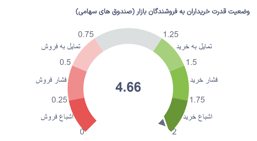 نگاهی به وضعیت قدرت خریداران به فروشندگان بازار سهم از منظر معاملات سهام و حق تقدم، گویای آن است که خرید در منطقه اشباع خرید قرار دارد. این وضعیت در معاملات صندوق های سهامی نیز به همین شکل دیده می شود.