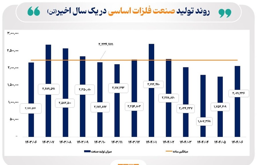 رشد ۱۸ درصدی تولید صنعت فلزات اساسی در یک ماه گذشته