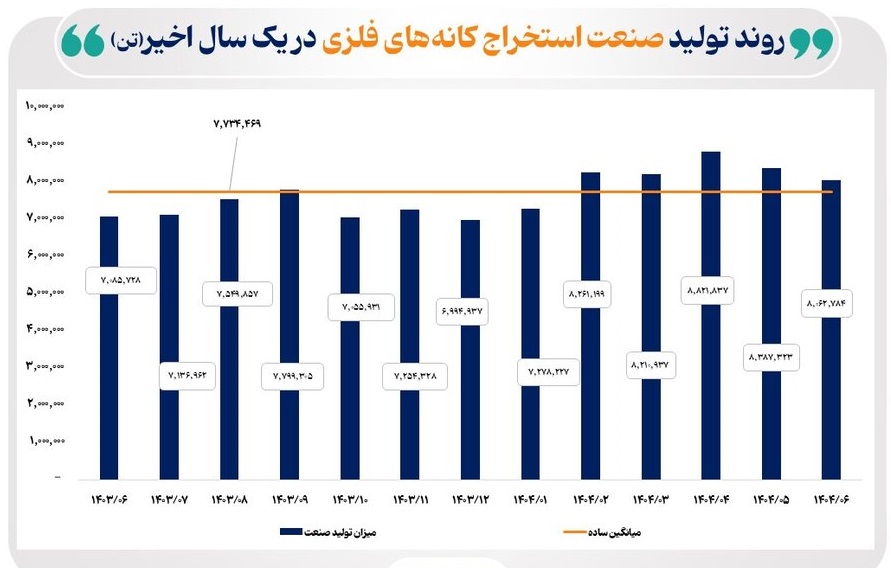میزان تولید صنعت استخراج کانههای فلزی در سال ۱۴۰۳