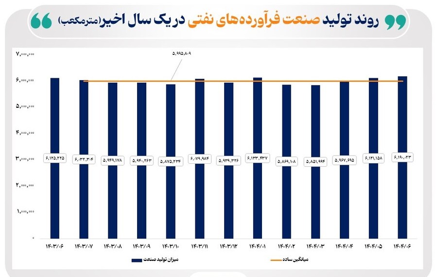 در تابستان سال ۱۴۰۴ مقدار تولید صنعت فرآوردههای نفتی نسبت به فصل قبل ( بهار ۱۴۰۴) ۲ درصد رشد داشته و نسبت به فصل مشابه سال قبل تفاوت محسوسی نداشته است.
