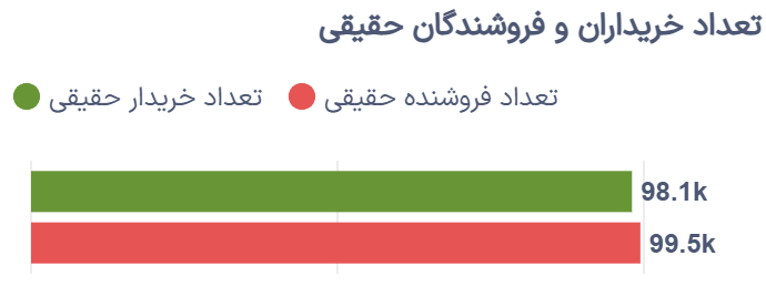 همچنین 98 هزار خریدار حقیقی در بازار سهام پورتفوی سرمایهگذاری خود را سنگین کردند؛ اما 99.5 هزار سرمایهگذار حقیقی فروشنده سهام بودند.