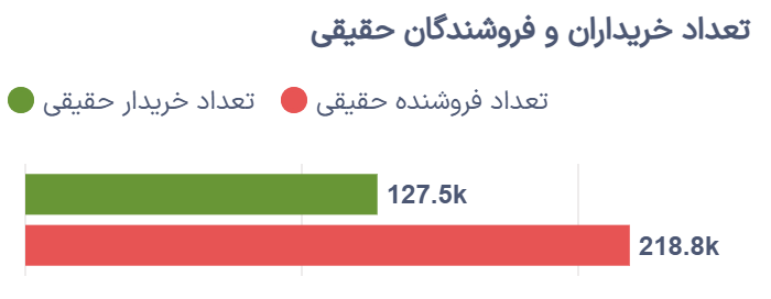 همچنین 127.5 هزار خریدار حقیقی در بازار سهام پورتفوی سرمایهگذاری خود را سنگین کردند؛ اما بالغ بر 219 هزار سرمایهگذار حقیقی فروشنده سهام بودند.