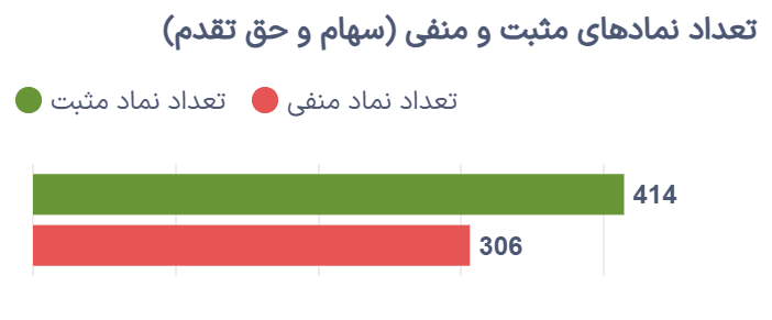 امروز 414 سهم و حق تقدم مثبت بودند و 306 سهم و حق تقدم بهصورت منفی به کار خود پایان دادند.