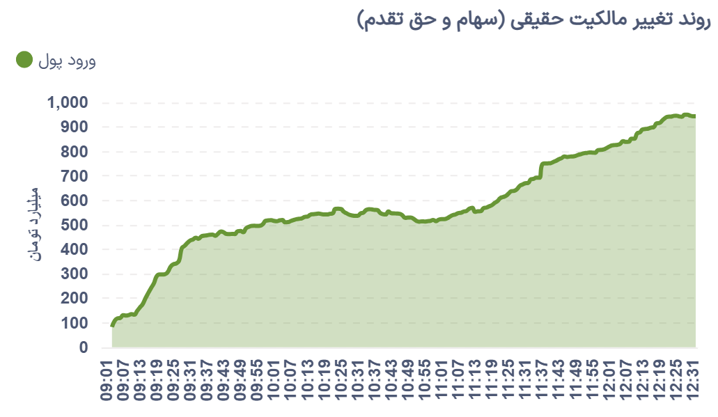 تغییرات مالکیت سهام و حق تقدم در بازار امروز با روندی منفی آغاز شد اما این روند منفی دیری نپایید و با ادامه روند مثبت، تا پایان روز ادامه داشت.