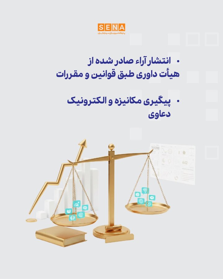 انتشار آراء صادر شده از هیأت داوری طبق قوانین و مقررات: اطلاعرسانی به فعالان بازار سرمایه از طریق انتشار آنلاین آراء هیأت داوری طبق اصول و مقررات موجود.