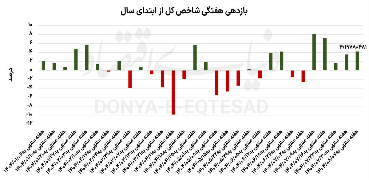 در این مقطع، شاخص کل بورس با رشد ۴.۲درصدی به یکی از بالاترین نرخهای بازدهی خود از ابتدای پاییز دست یافت؛ رقمی که تنها با جهش چشمگیر دوم مهرماه قابل مقایسه است. این رشد در حالی رقم خورد که بخش عمدهای از معاملات به صنایع شاخصساز از جمله پتروشیمیها، فلزیها و شرکتهای چندرشتهای صنعتی اختصاص داشت و خبرهای مربوط به اصلاح فرمول خوراک پتروشیمیها نقش اصلی را در این رشد ایفا کرد.