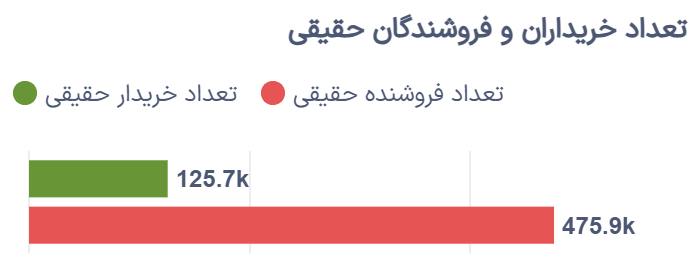 بر اساس دادههای معاملاتی، در این روز حدود ۴۷۶ هزار سرمایهگذار حقیقی فروشنده در مقابل ۱۲۶ هزار خریدار حقیقی قرار گرفتند. این اختلاف قابلتوجه بیانگر کاهش اعتماد سرمایهگذاران خرد و افزایش تمایل به نقد کردن داراییها در شرایط فعلی بازار است.