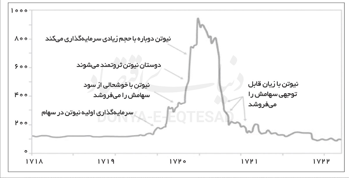 او برای روشنتر شدن موضوع به یک نمونه تاریخی اشاره کرد و گفت: اسحاق نیوتن، دانشمند بزرگ، در سال ۱۷۲۰ تصمیم گرفت در سهام شرکت دریای جنوب سرمایهگذاری کند. در ابتدا با احتیاط وارد شد، اما با دیدن رشد چندبرابری قیمت سهم، وسوسه شد و بخش بزرگی از دارایی خود را در آن سرمایهگذاری کرد. در نهایت، پس از سقوط قیمتها، حدود ۸۰ درصد دارایی خود را از دست داد. این مثال نشان میدهد که حتی بزرگترین ذهنهای تحلیلی هم ممکن است در برابر احساس طمع و هیجان تسلیم شوند؛ پدیدهای که در بازار سرمایه ایران نیز، بهویژه در سال ۱۳۹۹، مشاهده شد.