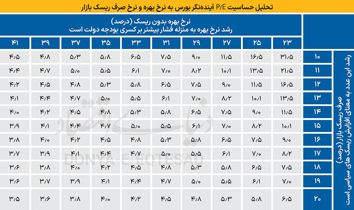 در نگاه کوتاهمدت، نسبت P/E بازار بهنظر میرسد که در محدوده فعلی یعنی حدود ۶ تا ۷ واحد در وضعیت تعادلی قرار دارد. این تعادل البته بر شالودهای لرزان است؛ زیرا ظرفیت افزایش نرخ بهره وجود دارد و در مقابل فشارهای بیشتربر بودجه دولت محتمل است.بسیاری از تحلیلگران معتقدند نرخهای ۳۷درصدی، آغازی برای افزایش نرخ تامین مالی شرکتها است. اکنون نیز در بازار اخزا یا اوراق دولتی، مشاهده میشود که نرخ بازده تا سررسید برخی از اوراق از مرز 40درصد نیز فراتر رفته است. از اینرو به نظر میرسد، ابهامات پیرامون بازار سرمایه بیشتر شده و جلوی رشد قابلتوجه بازار سهام را بگیرد.نمونههای تاریخی از سال ۱۳۹۵ تا امروز نشان میدهد بازار سهام ایران بیش از هر چیز تابع نرخ بهره و انتظارات تورمی است و هرگاه این دو نیرو همسو شوند P/E بازار با سرعت قابلتوجهی تغییر میکند.